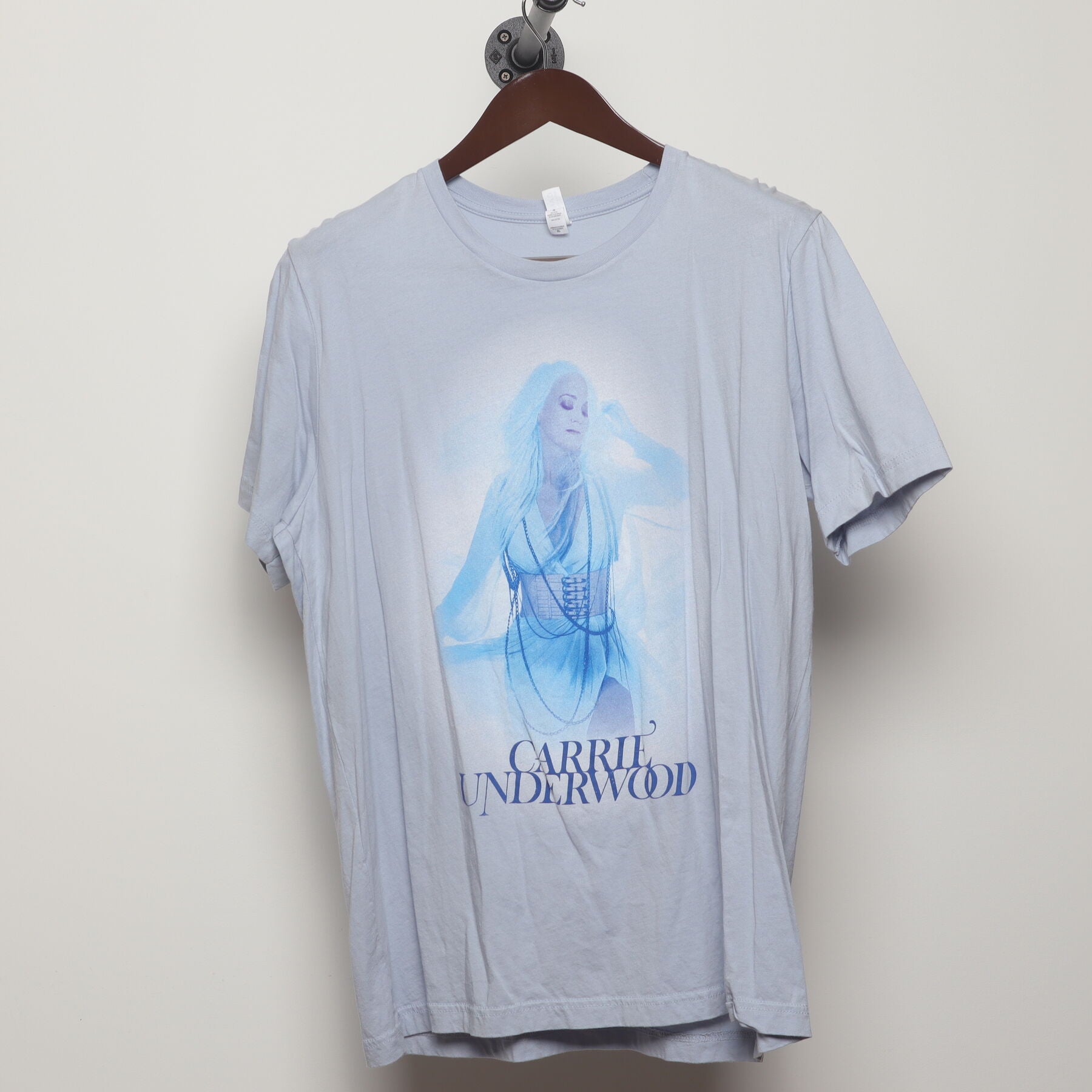 This tee captures the undeniable force of Carrie Underwood during her 2010s reign as the queen of country-pop. The ethereal, blue-toned graphic has a haunting quality, echoing the powerful storytelling of anthems from this era. It's a slice of modern music history, representing a superstar at the peak of her powers.