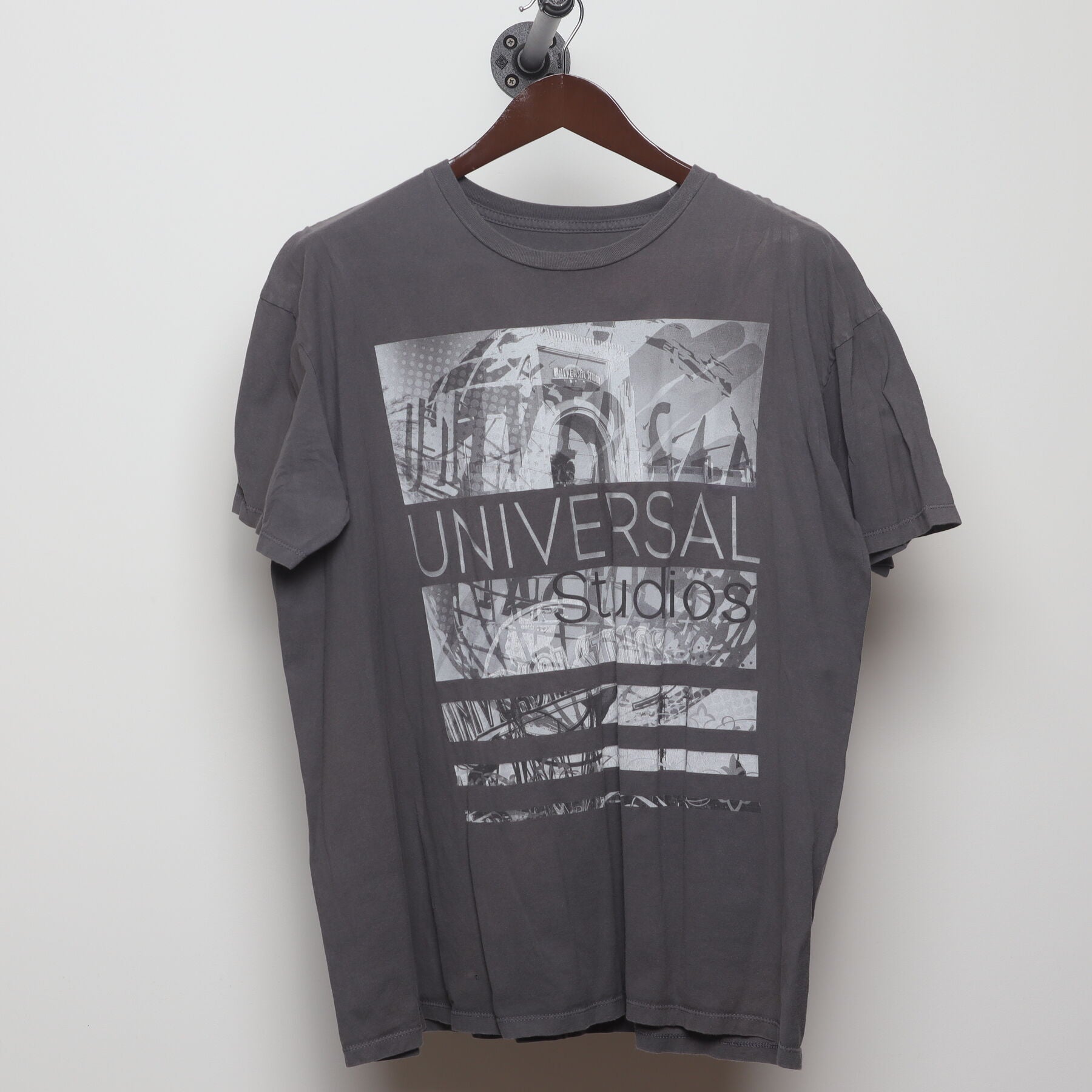 This isn't your average theme park souvenir. This tee captures the kinetic energy of Universal Studios through a deconstructed, artistic lens. The monochrome photo collage layers iconic park imagery—the globe, the grand entrance arch—into an abstract grid, creating a sense of movement and memory. It's less about screaming where you've been and more about capturing the cinematic feeling of the place. Worn to a perfect charcoal fade, this shirt has the soul of a blockbuster film and the comfort of a well-loved classic, ready for its next adventure.
