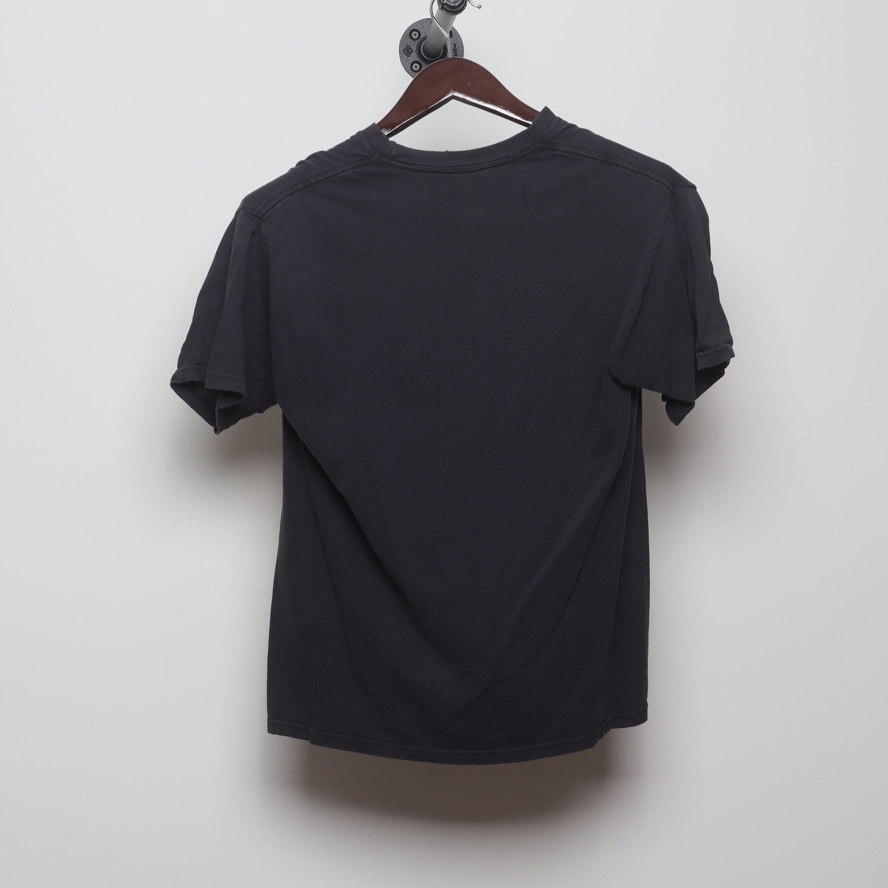 It's close to midnight, and something evil's lurking in the dark. This tee captures the exact moment the King of Pop transformed pop culture forever with the 1983 masterpiece, "Thriller." The graphic immortalizes Michael's ghoulish zombie form in a vibrant, almost comic-book style, with electric green skin and a blood-red jacket bursting from a perfectly faded black canvas. This isn't just a shirt; it's a piece of music history, a nod to the John Landis-directed mini-movie that set the standard for every music video that followed. The wear on this piece feels earned, like it's seen its share of moonwalks on a foggy night.